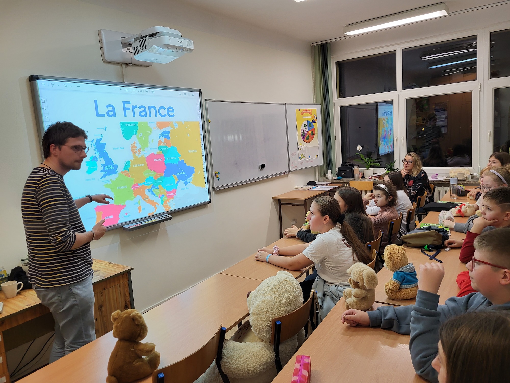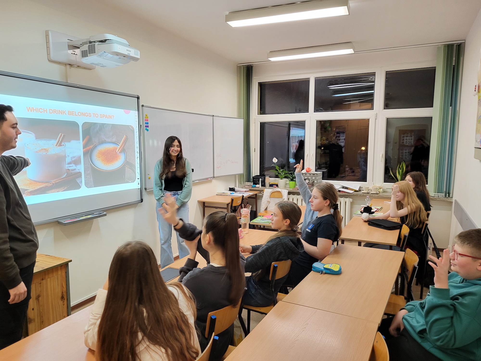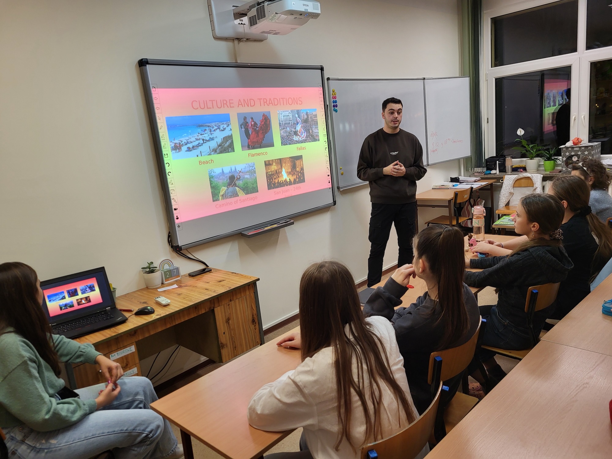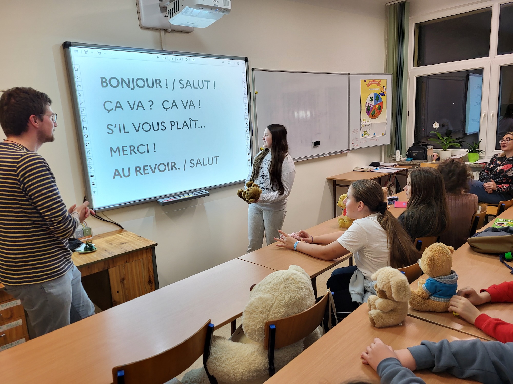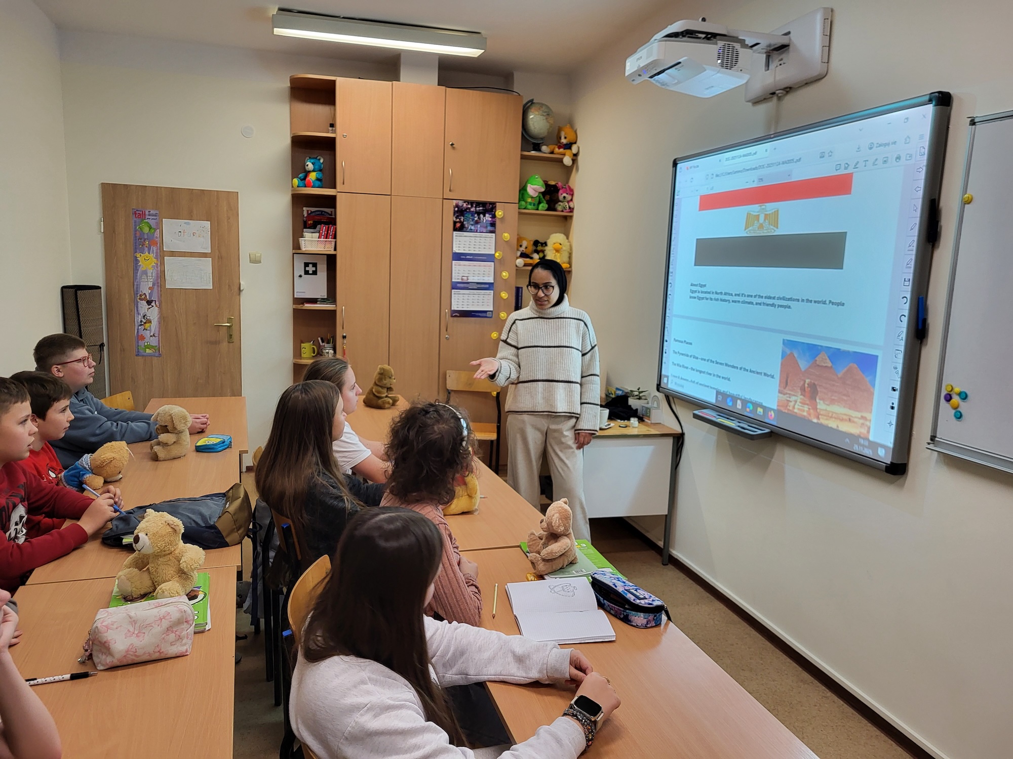 Na zajęciach kulturowych z klasą 6 rozmawialiśmy o Francji, Egipcie, Hiszpanii i Turcji, o historii tych krajów, ich kulturach, zwyczajach i potrawach. Uczyliśmy się też słów i zwrotów w językach obcych, a po francusku odegraliśmy scenkę i konwersację w parach.