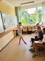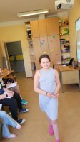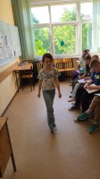 W grupie Junior 1 dzieci komponowały własne stroje, wcielając się w kreatorów mody. Następnie odegraliśmy scenkę, jak na wybiegu, z pokazem mody - były stroje, były modelki i było oceniające jury. Na koniec wszyscy zaśpiewaliśmy wspólnie piosenkę pt. "We are the champions".