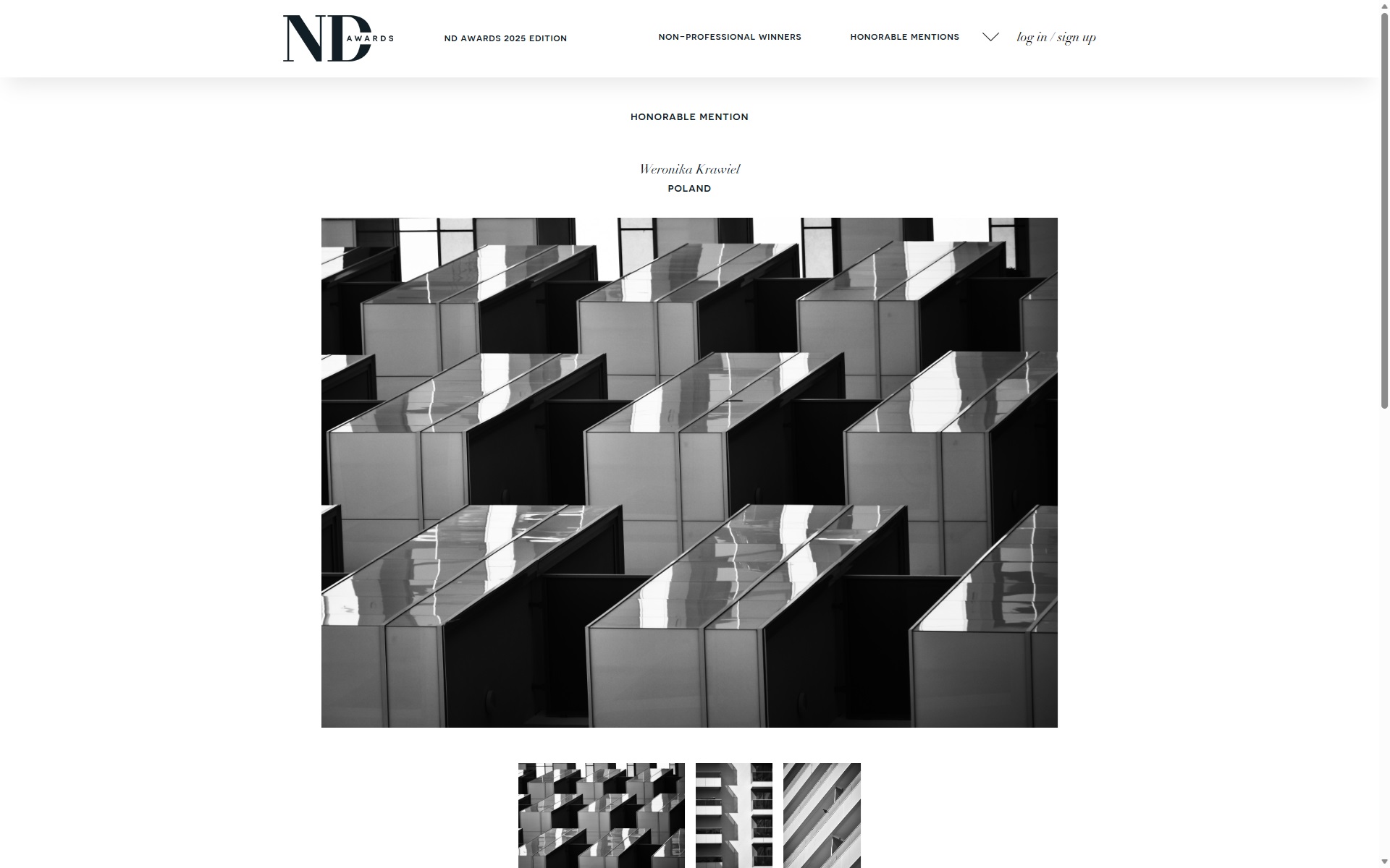Weronika Krawiel dostała wyróżnienie Honorable Mention in Architecture: Other category w międzynarodowym konkursie NDawards za serię zdjęć z balkonami. Gratulacje dla młodej artystki fotografki. Organizatorem konkursu jest międzynarodowe czasopismo ND magazine z Irlandii.