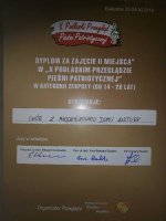 (instruktor Barbara Kornacka) zajął II miejsce na X Podlaskim Przeglądzie Pieśni Patriotycznej (Białystok 23-24.11.2019).