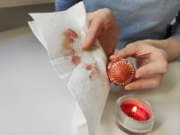 - wosk np. pszczeli umieszczony w kominku zapachowym lub bezpośrednio rozgrzany z płonącej świeczki typu tealight (najlepiej kolorowy, wtedy lepiej widać wosk na jajku),