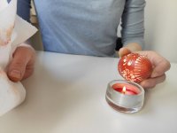 - Podczas barwienia wydmuszek barwnik powinien być letni, aby wosk się nie rozpuścił.