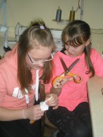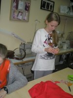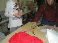 Uczestnicy pracowni kroju i szycia podczas pracy.