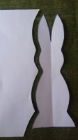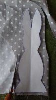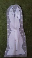 - Wybierz materiał, ułóż lewą stroną do lewej i odetnij materiał tak, aby wystarczyło na wierzch i spód króliczka uwzględniając dodatki na szwy około 1cm.
