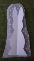 - Odszyj kształt króliczka wzdlóż linii formy. Uwaga! Pozostaw otwór do wypełnienia długości około 3 cm (najlepiej na linii prostej i w miejscu najmniej widocznym).