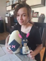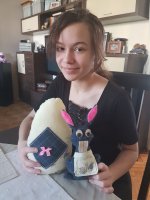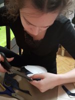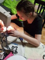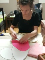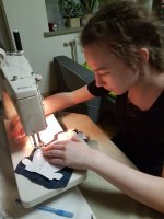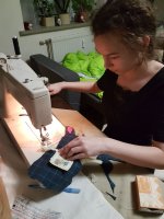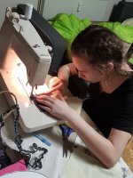 Na zdjęciach uczestniczka pracowni kroju i szycia Wiktoria Stokowska w domu podczas wykonywania ozdoby świątecznej. Oczywiście i efekty jej pracy.