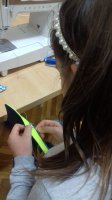 Najmłodsze uczestniczki zajęć poznały podstawowe narzędzia i przybory do szycia, zapoznały się z maszynami wieloczynnościowymi. Były pierwsze próby szycia na maszynach po liniach prostych, falistych i łamanych.