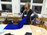 Mamy bardzo dużo pomysłów oraz chęci do pracy- tak twierdzą uczestniczki zajęć z grupy zaawansowanej. Na ile jednak będzie można zrealizować swoje plany i marzenia- pokaże czas oraz sytuacja dotycząca trwającej pandemii. Działamy- projektujemy pojedyncze modele oraz kolekcje odzieży, opracowujemy formy i szablony, wykonujemy prototypy z tkaniny zastępczej, planujemy dobór materiałów i dodatków krawieckich w poszczególnych asortymentach, normujemy zużycie materiałów.