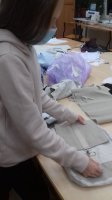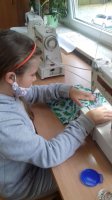 Na dobry początek wykonałyśmy maseczki ochronne. Obecnie uczestniczki zajęć wykonują plecaki lub torby, które zaprojektowały i realizują według własnego projektu.