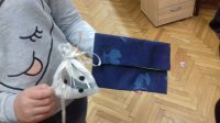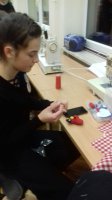 Wykonałyśmy już pierwsze przedmioty użytkowe- poduszki na igły oraz zawieszki. Obecnie pracujemy nad torbami ekologicznymi z ozdobną kieszenią lub naszywką.