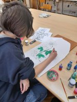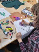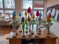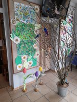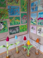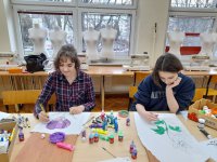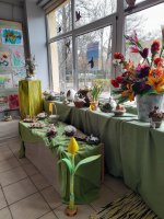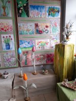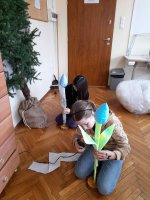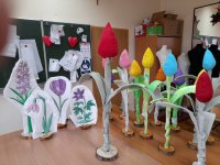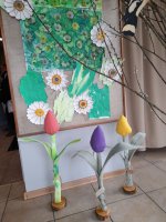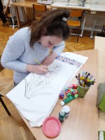 Uczestnicy wszystkich grup z wielkim entuzjazmem włączyli się w przygotowania do Świąt Wielkanocnych. W pracowni powstały kolorowe kwiaty, które można zobaczyć w Galerii Młodych w głównej siedzibie MDK na wystawie pt. „Wiosenne kwiaty” oraz na korytarzu w filii placówki przy ul. Żabiej.