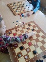 Najmłodsi uczestnicy zajęć MDK rozpoczynają przygodę z szachami.