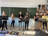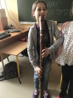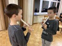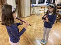 Praca w pierwszym semestrze ma na celu rozszerzenie działań zespołu, polegające na wprowadzeniu gry na różnych rodzajach fletów podłużnych i objęcie jej coraz większą ilością uczestników zajęć. Osoby, które dołączyły w tym roku szkolnym do naszej „rodzinki fletowej” grają na fletach sopranowych. Flety sopranowe są najczęściej używane ze względu na niewielki rozmiar oraz powszechną dostępność. Ze względu na większe rozmiary instrumentów nie wszyscy do tej pory mogli przykryć otwory we flecie altowym, tenorowym i basowym. Jednakże uczestnicy zajęć rosną i dlatego też, że od niedawna nasze grono fletowe poszerzyło się o kolejne flety altowe, które cenione są za szczególnie piękne i miękkie brzmienie. W zespole są dwie osoby grające na tenorze i jedna na basie – jest to bardzo ważne ponieważ flety te spełniają przy muzykowaniu zespołowym ważna rolę, prowadząc najniższy głos stanowiący podstawę harmoniczną utworu. Wszyscy uczestnicy robili przymiarki do większych fletów. Świetnie się przy tym bawiąc J. Od tego momentu mamy pełny skład zespołu: flet sopranowy, altowy, tenorowy i basowy. Możemy grać coraz bardziej złożony repertuar, a więc przygotowujemy duety, tria, kwartety w różnym repertuarze – od klasyki, muzyki dawnej, po muzykę filmową. A więc na naszych najbliższych koncertach zabrzmią flety sopranowe, altowe, tenorowe i basowy, a terminach koncertów już wkrótce poinformujemy!