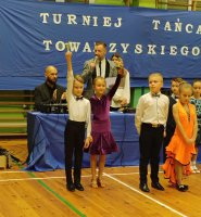 W sobotę, 14 grudnia 2024 roku odbyły się V Otwarte Mistrzostwa w Tańcu Towarzyskim o Puchar Dyrektora Szkoły Podstawowej im. ks. Michała Sopoćki w Księżynie. Nasza Pracownia Tańca Towarzyskiego, prowadzona przez Marię Żukowską, wzięła udział zarówno w kategoriach par, jak i solistek. Tancerze zaprezentowali się w tańcach standardowych i latynoamerykańskich: Walcu Angielskim, Walcu Wiedeńskim, Sambie, Cza-czy, Rock and Rollu, a pary dodatkowo zatańczyły Polkę. Turniej przebiegał w niezwykle przyjaznej atmosferze. Wszyscy nasi reprezentanci zajęli premiowane miejsca, a niektóre tancerki zdobyły aż po dwie statuetki, tańcząc w parach z chłopcami oraz solo. Składamy serdeczne podziękowania panu Marcinowi Tomkiel za zaproszenie i organizację tego wspaniałego wydarzenia.