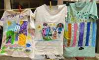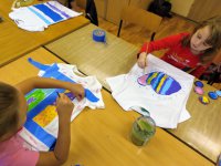 Samodzielnie i odważnie zaczynamy od malowania na tkaninie, czyli przygotowujemy koszulki, które będą nam służyć jako fartuszki do pracy :)