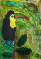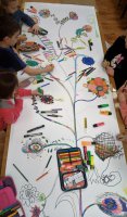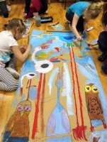 Tak powstał obraz na wiosenną wystawę narysowany przez trzy grupy "Mazaki", "Pisaki" i "Pędzelki".