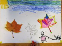 Jesienią z najmłodszą grupą "Free Free", przyglądamy się liściom.
