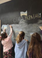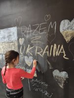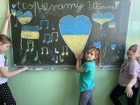 Piosenkę Kraj miłości dla Ukrainy śpiewa Klub Piosenki MDK i instruktorka Magda Niewińska.