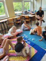 Na zajęcia do grupy Primary 2 dołączył tata jednego z uczestników zajęć. Tata przeczytał dzieciom po angielsku książkę pt. "The good egg". Wspólnie rozmawialiśmy o fabule książki, o dobrym i złym zachowaniu. Wykonywaliśmy też ćwiczenia związane z życiem ptaków. A na koniec tata, który zajmuje się dzikimi ptakami, opowiedział dzieciom o zwyczajach i życiu tych pięknych i mądrych ptaków.