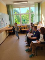 W grupie Junior 1 dzieci komponowały własne stroje, wcielając się w kreatorów mody. Następnie odegraliśmy scenkę, jak na wybiegu, z pokazem mody - były stroje, były modelki i było oceniające jury. Na koniec wszyscy zaśpiewaliśmy wspólnie piosenkę pt. "We are the champions".