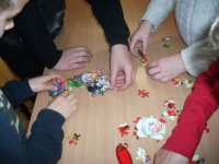 Do grup Junior 1 i Junior 2 z mikołajkową wizytą przyszli obcokrajowcy z Gruzji i Ukrainy, wolontariusze ze Stowarzyszenia Anawoj. Goście opowiadali o swoich krajach, o swoich kulturach, a także o swoich zwyczajach i tradycjach świąteczno-noworocznych. Dzieci bardzo aktywnie uczestniczyły w zajęciach, zadawały liczne pytania, a dziewczynki w duecie zaśpiewały gościom piosenkę świąteczną.