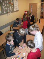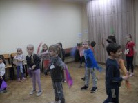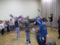 Z grupą Primary 1 odwiedziliśmy dzieci z pracowni arteterapii. Wspólnie z Panią Iwoną Dzierma dzieci bawiły się w rytm muzyki, wykonywały ćwiczenia rozwijające zmysły słuchu i wzroku, a na koniec wspólnie utrwalaliśmy znane słownictwo z języka angielskiego i graliśmy w gry integracyjne po angielsku.