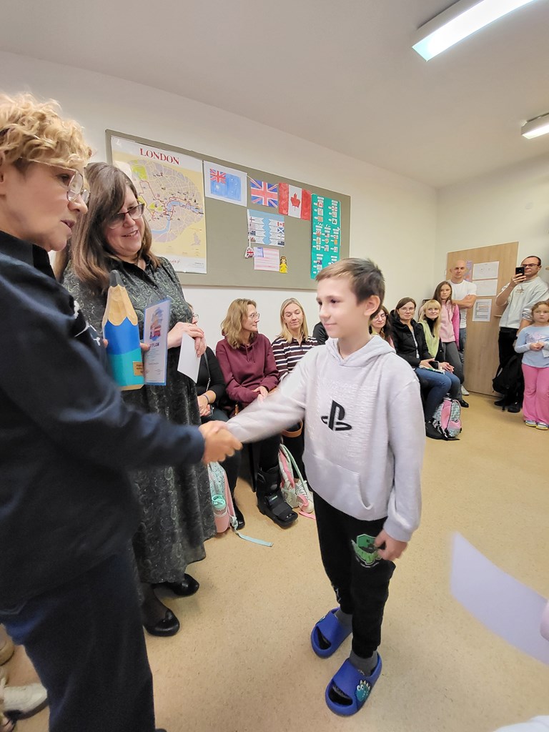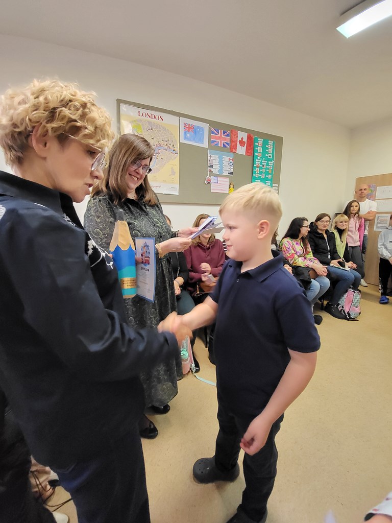 Dzieci z grupy Primary 1 miały pasowanie na Angielskiego Żaka - teraz w pełni już są częścią naszej społeczności MDK :) Gratulujemy serdecznie i życzymy wielu chwil radości i uśmiechu na zajęciach z języka angielskiego. W tym dniu mieliśmy też zajęcia integracyjne z rodzicami - było śpiewanie piosenki, zabawa ruchowa i plastyczna, dzięki czemu wszyscy pięknie utrwaliliśmy cyferki i liczenie po angielsku. Wszyscy, zarówno dzieci, jak i rodzice, byli bardzo dzielni! :)