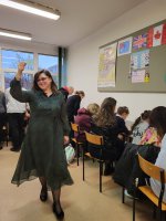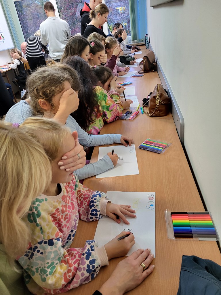 dniu 30.09.2025 r. w grupie Junior 3 gościliśmy Panią dr Annę Sańczyk-Cruz z Uniwersytetu w Białymstoku. Z okazji Europejskiego Dnia Języków Obcych mieliśmy warsztat w języku angielskim pt: "Double the fun: British & American English - game hour". Dzieci rozwiązywały łamigłówki i pisały list w języku angielskim.