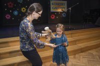 Dzieci nagrodzone i wyróżnione zaprezentowały na scenie swoje wiersze oraz piosenki a następnie odebrały dyplomy i nagrody z rąk kierownik Działu Organizacji Imprez MDK - Dominiki Chojnackiej-Jamiołkowskiej.