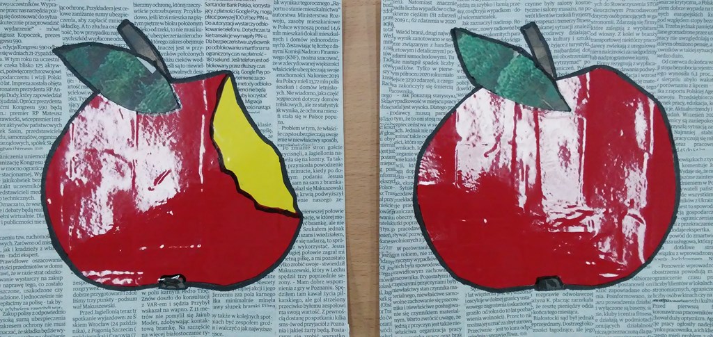 Kolejnym naszym tematem były ćwiczenia z podstawowych rodzajów kompozycji. Zapoznałem uczestników zajęć z czterema parami przeciwstawnych rodzajów kompozycji: statyczna – dynamiczna, horyzontalna – wertykalna, symetryczna – asymetryczna, otwarta – zamknięta. Każdy mógł wybrać sobie jedną parę przeciwstawnych kompozycji i zinterpretować ją w sposób graficzny na dwóch planszach 20x20 cm. Do dyspozycji młodzież miała proste materiały plastyczne, jak brystol, kolorowa folia samoprzylepna, czarny flamaster, gazeta, klej i nożyczki.