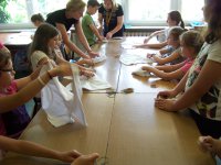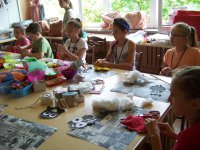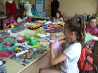 W czasie wakacji (17-21 lipca 2017r.) odbyły się w MDK w Białymstoku półkolonie plastyczno - krawieckie. 14 uczestników w wieku od 9 do 12 lat właśnie w tej pracowni rozpoczęło swoją przygodę z igłą i nitką. Podczas warsztatów dzieci w pracowni plastycznej i krawieckiej zaprojektowały i wykonały: