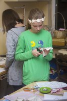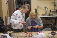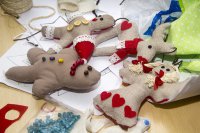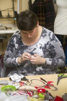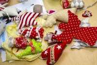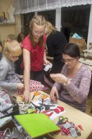 Podczas warsztatów rodzinnych „Ozdoby bożonarodzeniowe-szyte na miar” każda para (rodzic i dziecko) wykonała średnio 14 ozdób. Łącznie uczestnicy wykonali około 100 sztuk kolorowych gadżetów na choinkę. Brawo!!!