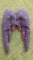 - Wybierz materiał, ułóż prawą stroną do prawej (oddzielnie korpus, oddzielnie skrzydła).
