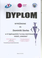 2) Dominika Sierbo z grupy zaawansowanej zastała finalistką VI OGÓLNOPOLSKIEGO TURNIEJU SZKÓŁ MODY- ODZIEŻ „ODNOWA” Biłgoraj 2024.
