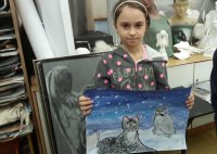 W grupie plastycznej „Inspiracje" słychać kocie mruczenie... Kiedy spadł śnieg, zrobiło się nastrojowo. Wszędzie biało i mroźnie. Zimowa pogoda pomogła nam wyobrazić sobie, jak ciężko jest bezdomnym kotom przetrwać zimę. Mamy nadzieję, że te kocie portrety wzruszą i zachęcą ludzi do niesienia im pomocy.