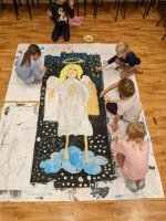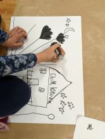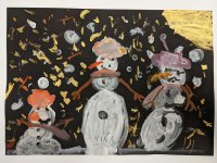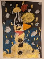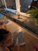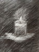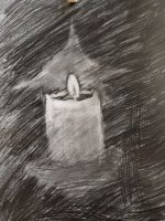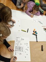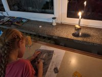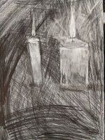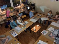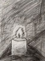 Dwie grupy, Pisaki i Flamastry podjęły próbę rysowania płomienia z natury i zrobiło się trochę nastrojowo.