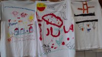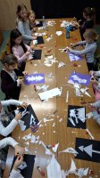 Fartuszki do pracy wykonane. Możemy zaczynać eksperymenty! Czy tkanina pije wodę tak jak papier?