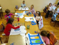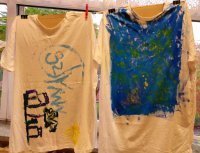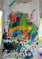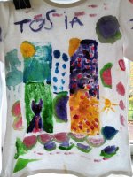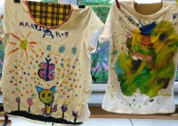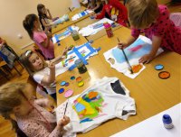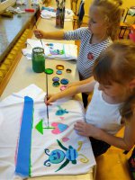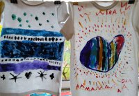 Samodzielnie i odważnie zaczynamy od malowania na tkaninie, czyli przygotowujemy koszulki, które będą nam służyć jako fartuszki do pracy :)