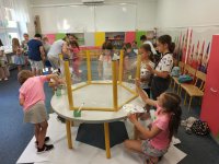 Zajęcia odbywały się zarówno na terenie placówek oświatowych, jak i poza nimi. Organizatorzy półkolonii zaplanowali bowiem wiele ciekawych propozycji. Były to m.in.: wyjścia do kina, zabawy w Fikolandzie, wyjścia do kręgielni, stadniny koni, na basen, wyjazd do Parku Kulturowego Korycin-Milewszczyzna, podczas którego dzieci brały udział w zajęciach edukacyjnych i spędziły czas na zabawach na świeżym powietrzu, wizyty w parku linowym, w Parku Morza, Lądy, Oceany czy fascynujące rozgrywki w mini golfa. Nasi wychowankowie zwiedzali także białostockie muzea oraz poznawali miasto podczas pieszych wędrówek. Nie było czasu na nudę. Wszystkie zajęcia prowadzone były przez wykwalifikowaną kadrę nauczycieli z przygotowaniem pedagogicznym przy współpracy pracowników innych instytucji kulturalno-edukacyjnych.