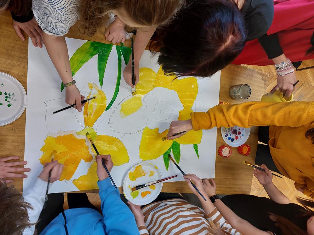 -pracownia plastyczna pod opieką artystyczną Moniki Sienkiewicz. Młodzież wykonała wspólnie tematyczną pracę.