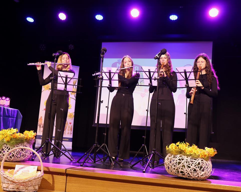 - uczestnicy zajęć pracowni fletowej MDK pod kierunkiem pani Magdaleny Nowickiej oraz Marlena Goworko uczestniczka zajęć wokalnych pracowni muzycznej MDK pod kierunkiem pana Kamila Wróblewskiego.